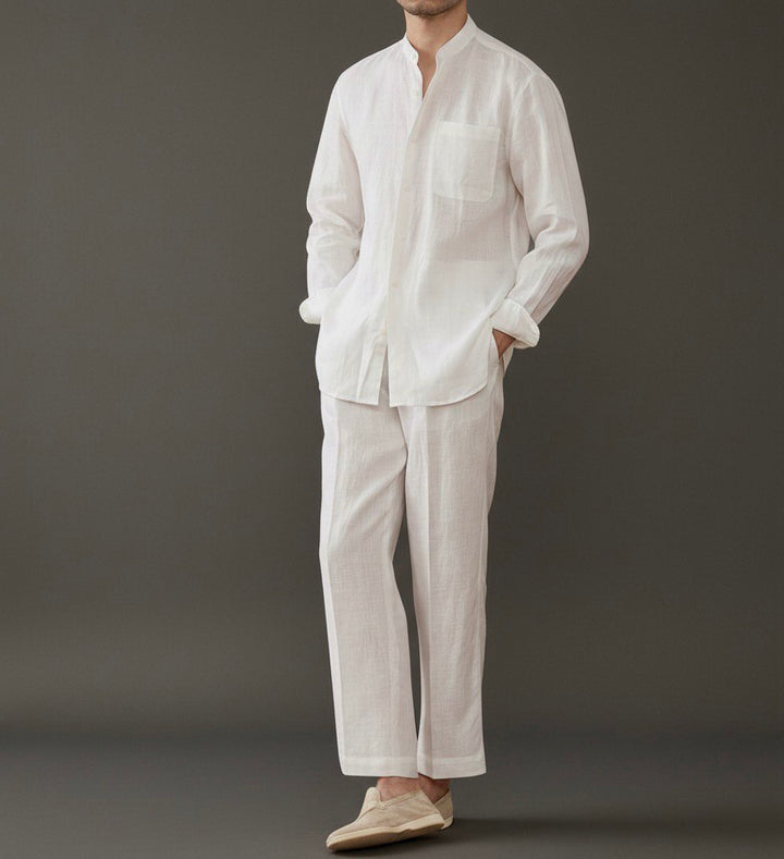 The natural texture of pure linen adds an earthy charm while keeping you cool and comfortable all day. Whether you're dressing it up with accessories or keeping it minimal, this versatile set makes a statement with simplicity.